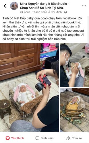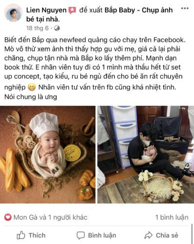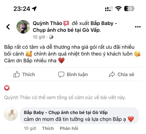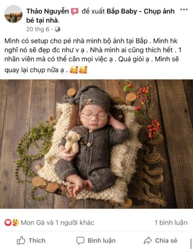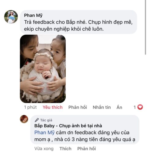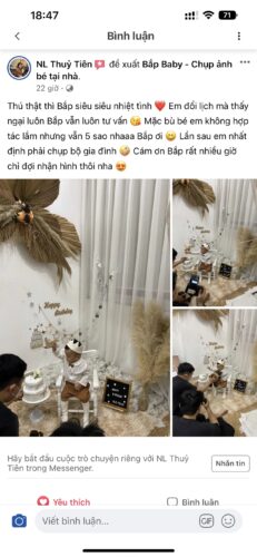 Tôi thực sự không hài lòng với ê kíp chụp ảnh của Bắp baby. Thái độ quá nhiệt tình với gia đình mình, chụp thì sáng tạo, nhiệt tình, make có tâm, phụ chăm chỉ. Album gia đình thì đẹp quá nên ko lỡ xóa cái nào. Chúc các bạn ngày càng phát triền hơn nữa.